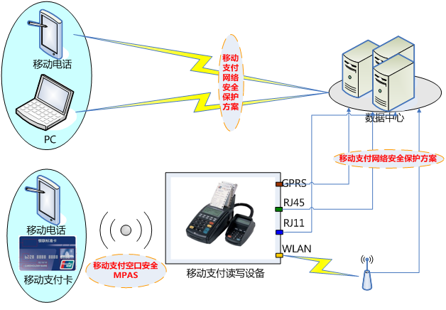 下圖所示為移動支付安全整體解決方案,其中MPAS用于保護移動支付空中接口的安全。