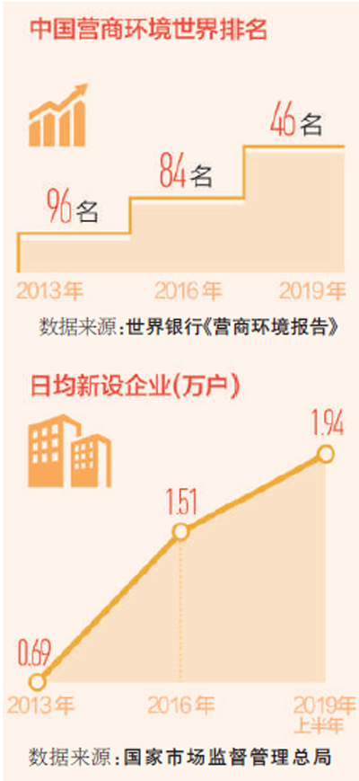 審批服務(wù)“馬上辦、網(wǎng)上辦、就近辦、一次辦”全面推行,“互聯(lián)網(wǎng)+政務(wù)服務(wù)”深入實(shí)施,企業(yè)開辦、用水用電報(bào)裝、不動(dòng)產(chǎn)登記等事項(xiàng)的辦理時(shí)間壓縮50%以上……政務(wù)服務(wù)質(zhì)量效率大幅提升,惠及國內(nèi)外創(chuàng)業(yè)者。上半年,我國日均新設(shè)企業(yè)達(dá)1.94萬戶。